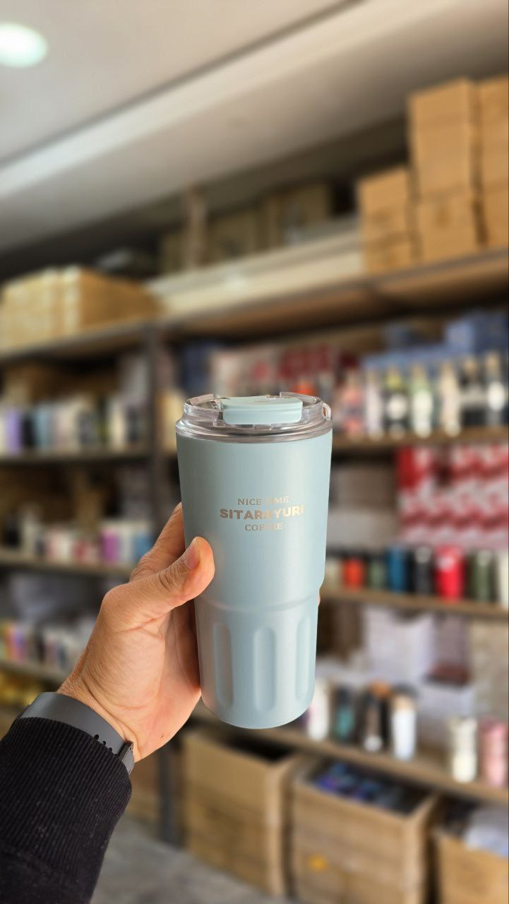 📌تراول ماگ‌ دو حالته درب شفاف SITARAYURI ✅استیل 316 دوجداره ✅ساخت چین کیفیت عالی ✅حجم 600  میل